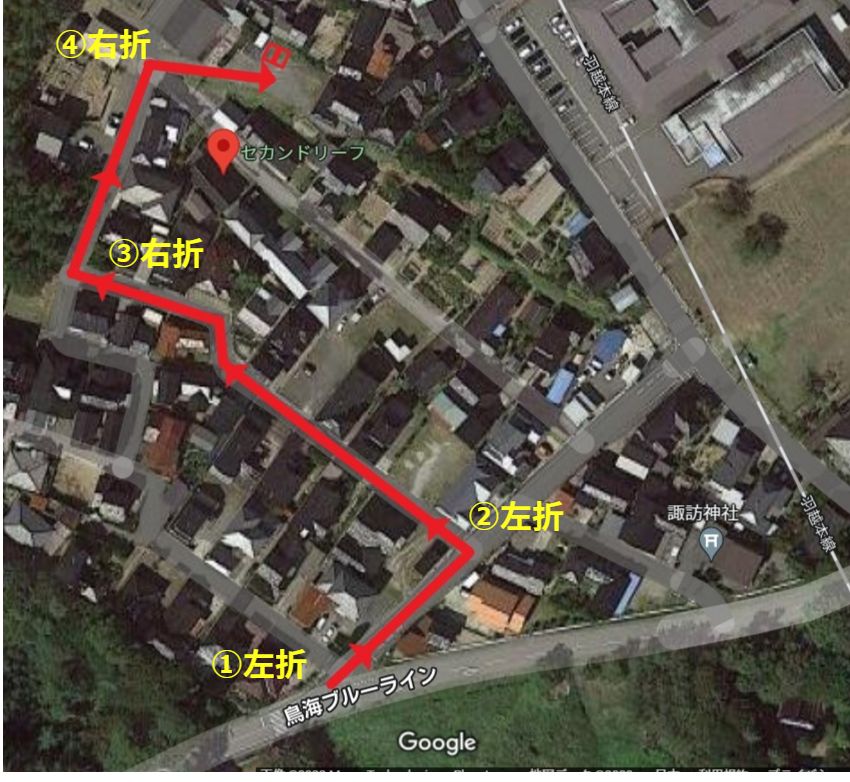 【注意】道幅が狭いためお車は必ず矢印の道順でお越しください。